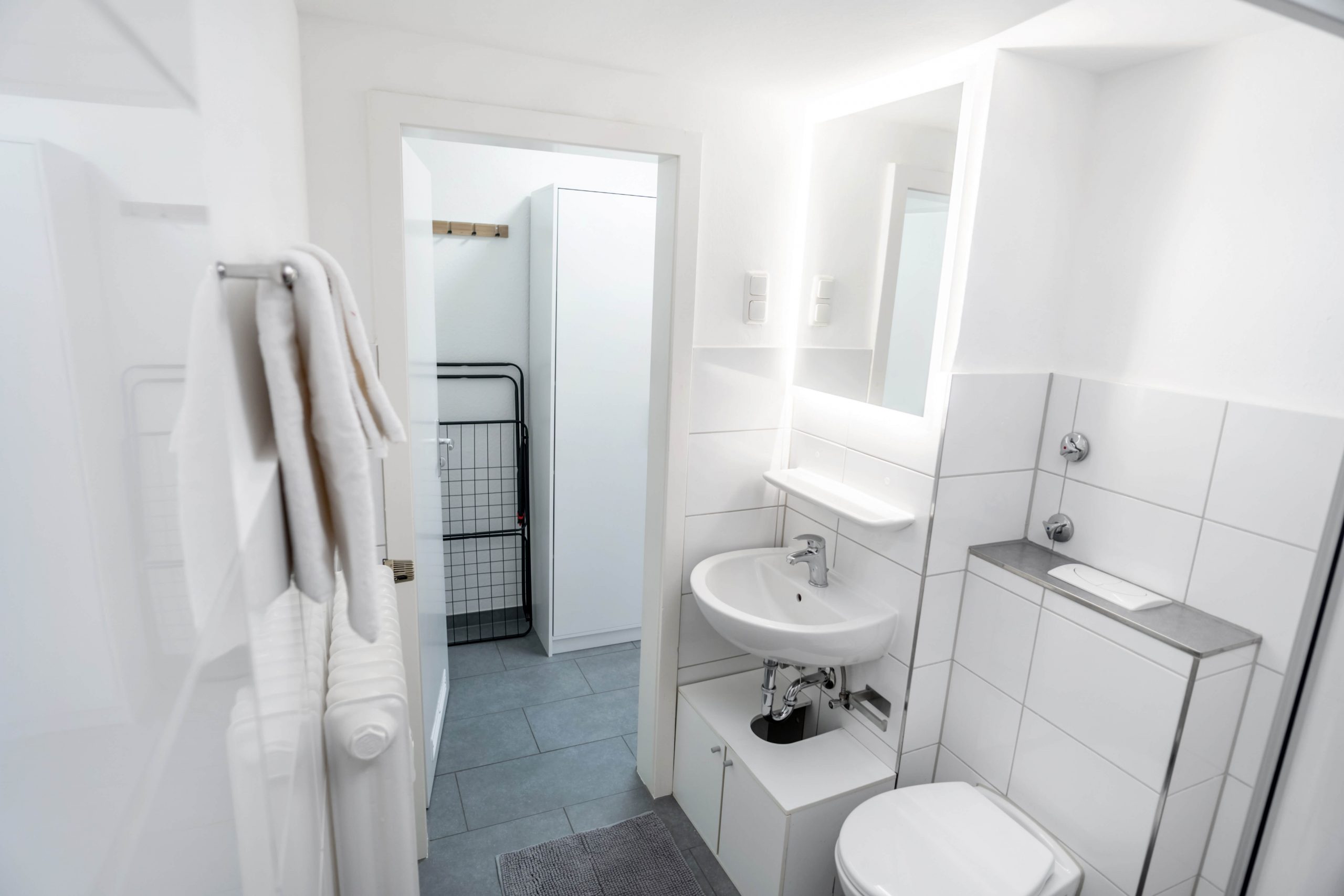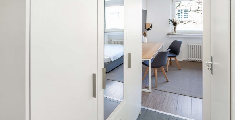 Extensive and high-quality equipment – Very central, but at the same time absolutely quiet location – Very good transport links to the airport, main train station and public transport *Apartment and equipment* Welcome to your new, fully furnished apartment in the heart of Cologne! This high-quality apartment was extensively renovated and completely refurnished in March 2023. The apartment faces the green courtyards of several neighboring houses and guarantees complete peace and a peaceful retreat. Nestled in a prime location, this apartment conveys a comfortable, quiet and modern living experience. The furnishings have been planned and designed in detail to combine modern aesthetics with homely practicality. Upon entering the apartment, you will find a well-equipped living area that seamlessly combines functionality and style. The apartment is fully furnished with contemporary and comfortable furniture and design elements, creating a warm and inviting atmosphere. The apartment offers very extensive and high-quality equipment: – Fast Internet / WiFi (50MBit download, 10MBit upload) – Solid wood shutters guarantee complete blackout for a restful night’s sleep on request – Modern 55″ Smart TV with 4K resolution for entertaining movie nights – High-quality Bluetooth speaker including Google Assistant – Practical appliances such as a washing machine, microwave, toaster, kettle and Nespresso coffee machine – Crockery, cutlery, towels, duvet, pillows, a hair dryer and much more are of course included in the equipment *Location and surroundings* In the Cologne district of Nippes, the lively, colorful and diverse city life merges with a tranquil, quiet and green residential idyll. In the middle of this dynamic district you will find the charming Blücherstrasse, one of the many small, quiet oases away from the lively Neusser Strasse. Immerse yourself in the lively atmosphere of Neusser Strasse – just 2 minutes’ walk from your apartment. Countless trendy boutiques, restaurants, shops, bars and cafes await you. Neusser Strasse is the ideal destination for anyone who wants to feel the pulse of city life. When you then return to your apartment – just 100 meters away – you will no longer see or hear the hustle and bustle of Neusser Strasse. The Blücherpark right outside the door of the apartment offers just as many *Transport connections* Cologne/Bonn Airport (CGN) can be reached in 15-20 minutes by car, the main train station is less than 10 minutes away. The A57, A3 and A4 motorways can also be reached in less than 10 minutes. Public transport (bus and train) can be reached in a few minutes on foot. Rental bikes,Car sharing and electric scooters also allow for quick and inexpensive transportation in the immediate vicinity of the apartment.