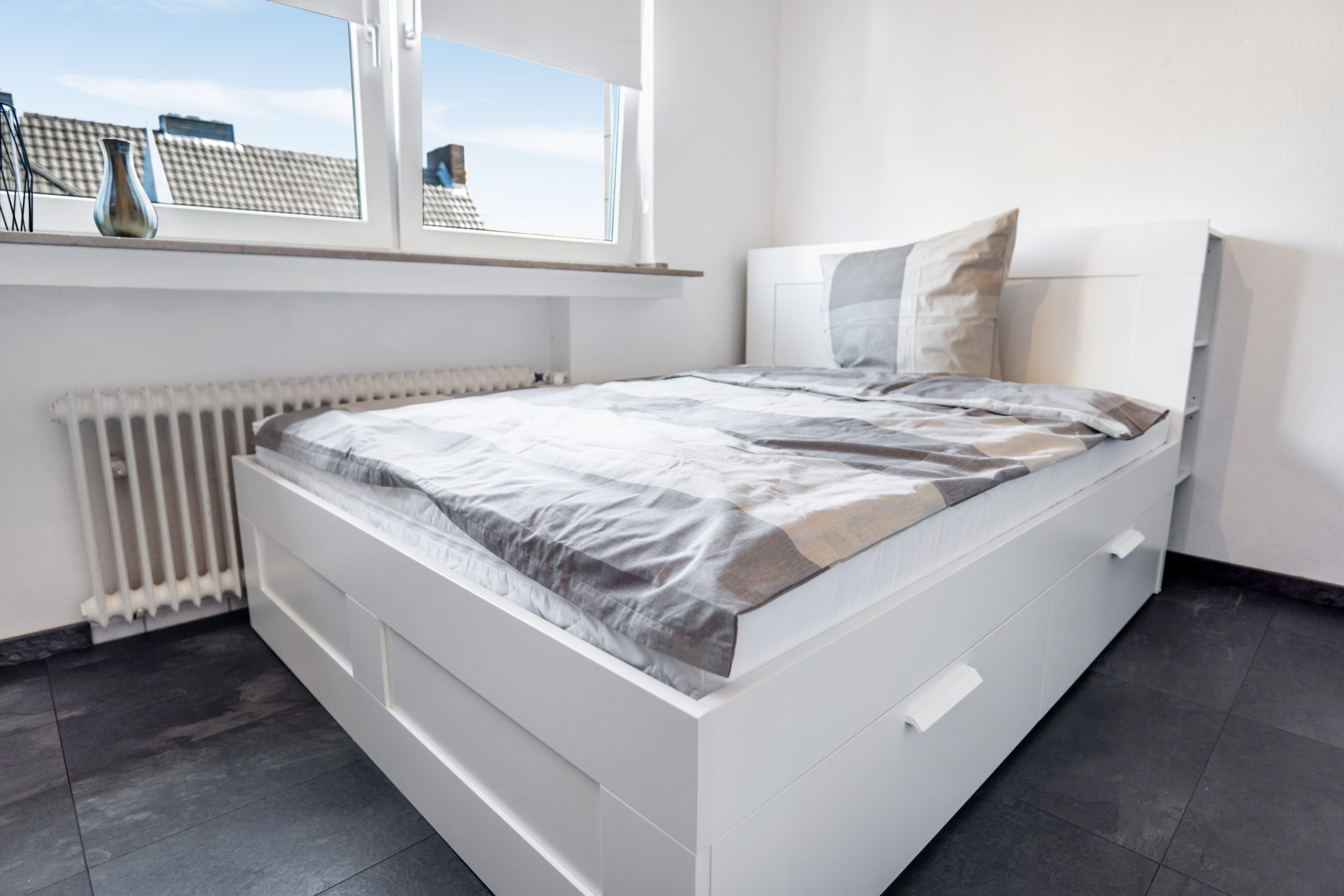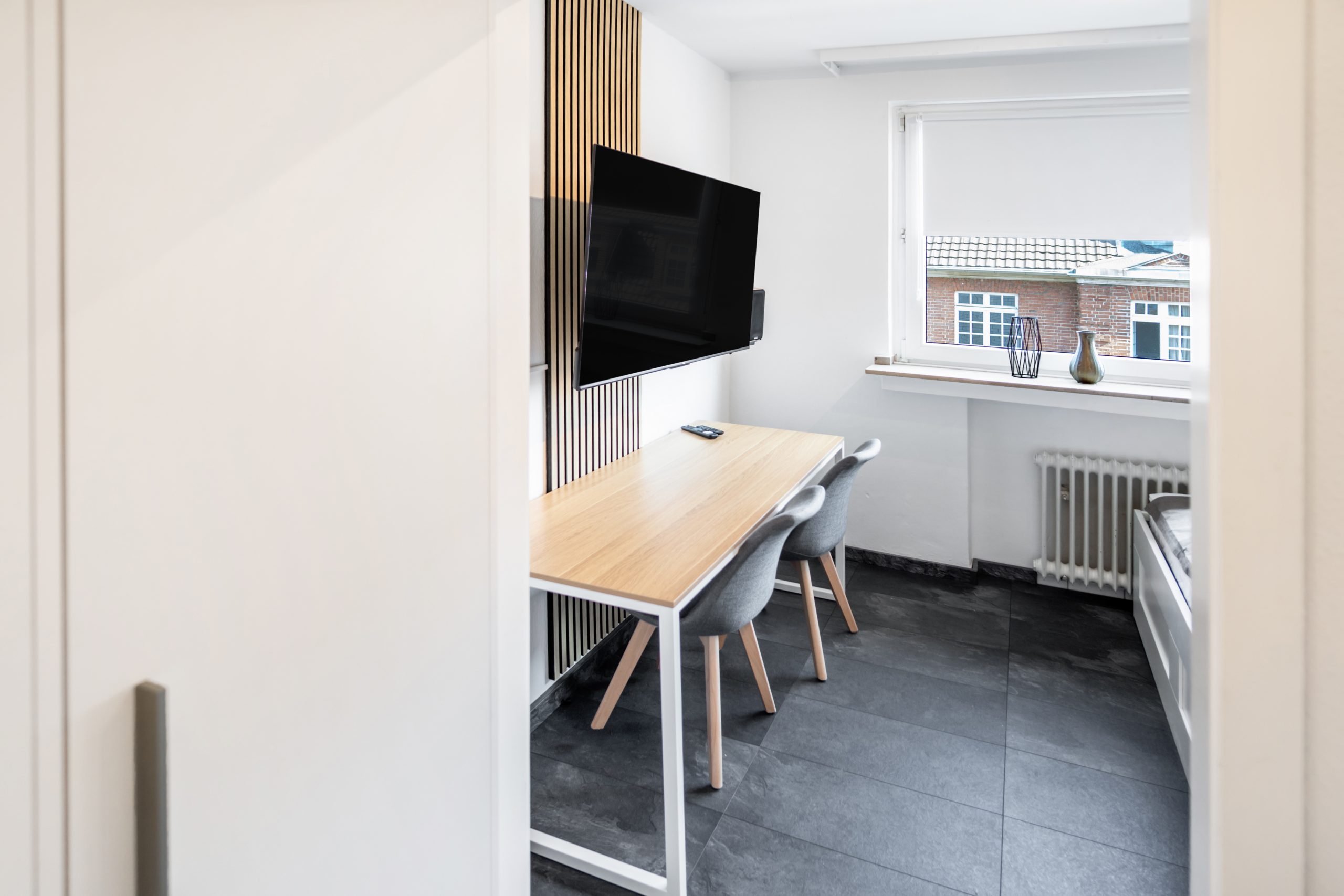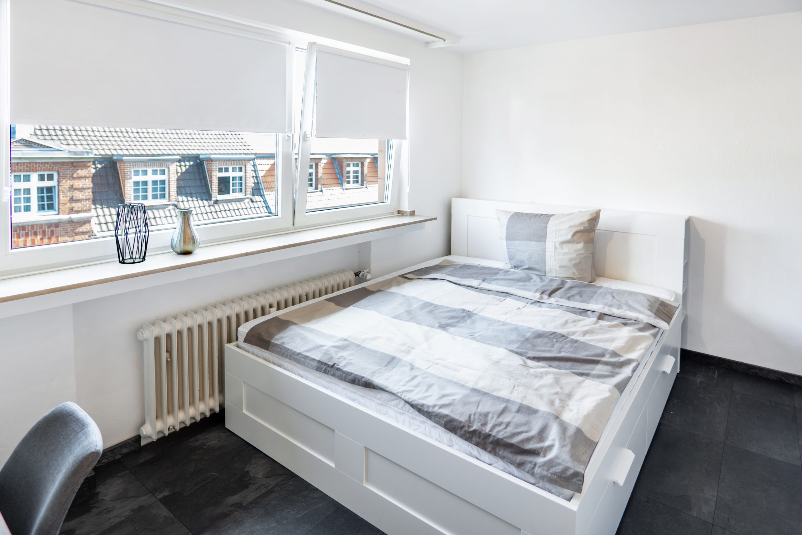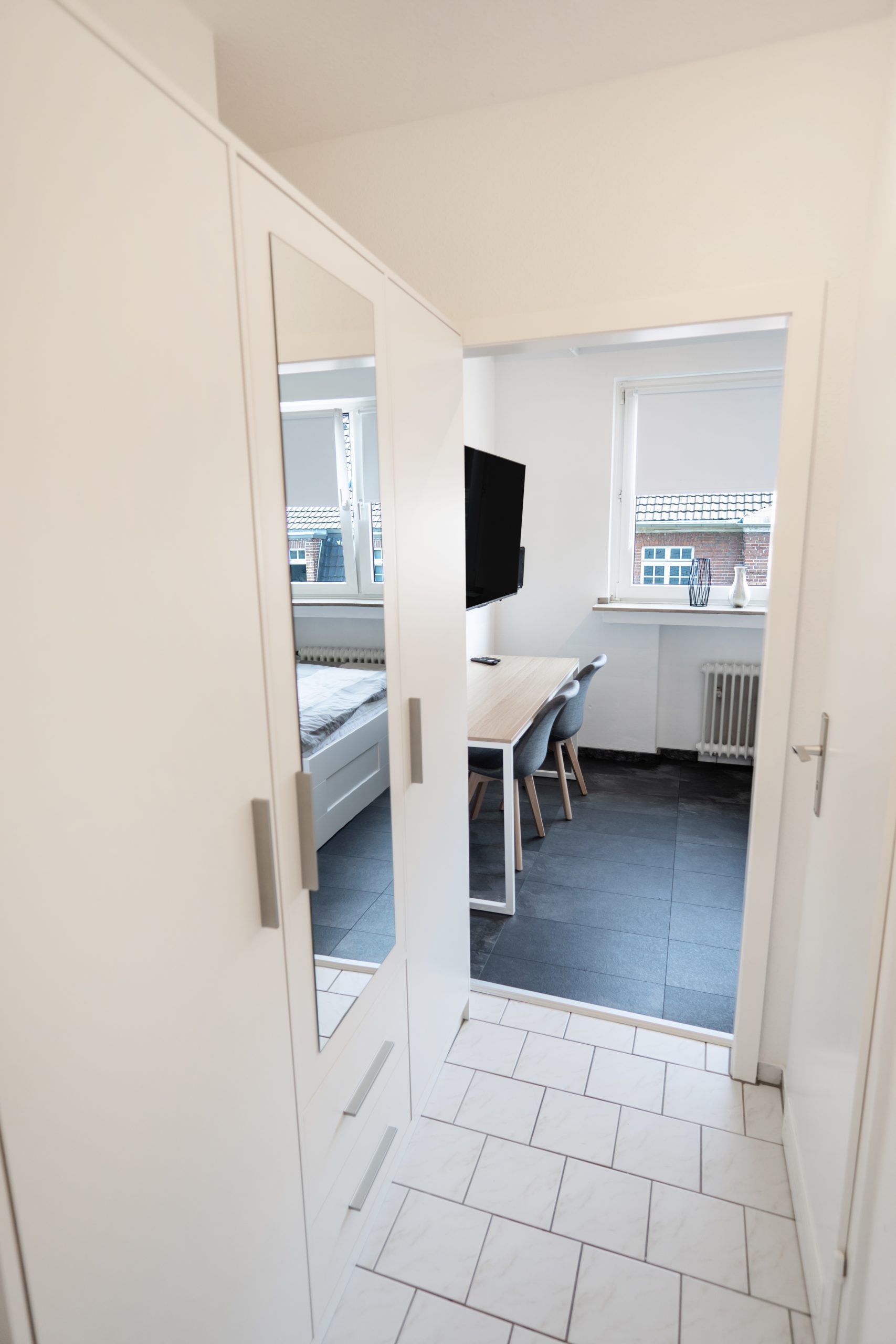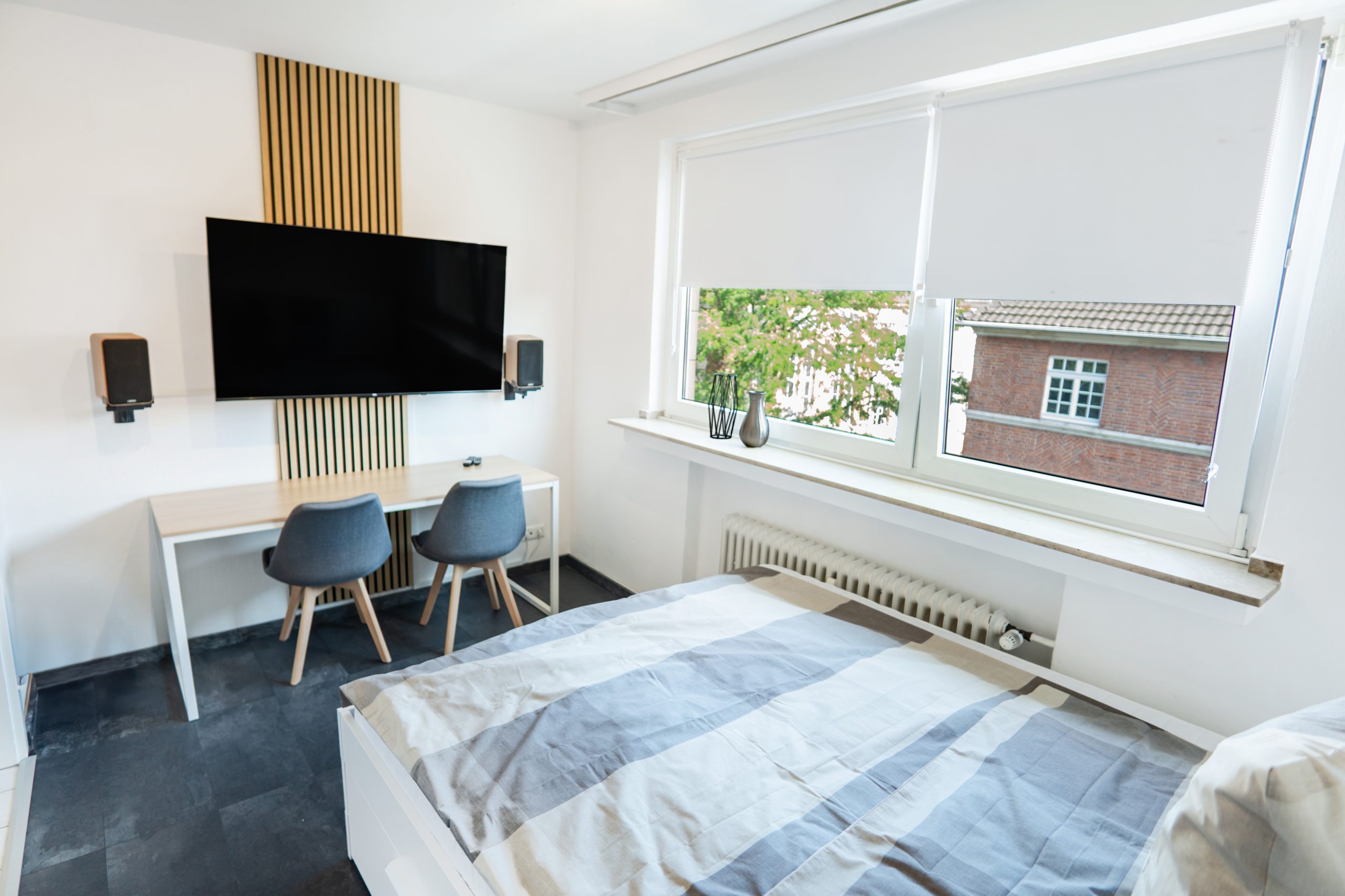 Extensive and high-quality equipment – Very central, but at the same time absolutely quiet location – Very good transport links to the airport, main train station and public transport *Apartment and equipment* Welcome to your new, fully furnished apartment in the heart of Cologne! This high-quality apartment was extensively renovated and completely refurnished in March 2023. The apartment faces the green courtyards of several neighboring houses and guarantees complete peace and a peaceful retreat. Nestled in a prime location, this apartment conveys a comfortable, quiet and modern living experience. The furnishings have been planned and designed in detail to combine modern aesthetics with homely practicality. Upon entering the apartment, you will find a well-equipped living area that seamlessly combines functionality and style. The apartment is fully furnished with contemporary and comfortable furniture and design elements, creating a warm and inviting atmosphere. The apartment offers very extensive and high-quality equipment: – Fast Internet / WiFi (50MBit download, 10MBit upload) – Solid wood shutters guarantee complete blackout for a restful night’s sleep on request – Modern 55″ Smart TV with 4K resolution for entertaining movie nights – High-quality Bluetooth speaker including Google Assistant – Practical appliances such as a washing machine, microwave, toaster, kettle and Nespresso coffee machine – Crockery, cutlery, towels, duvet, pillows, a hair dryer and much more are of course included in the equipment *Location and surroundings* In the Cologne district of Nippes, the lively, colorful and diverse city life merges with a tranquil, quiet and green residential idyll. In the middle of this dynamic district you will find the charming Blücherstrasse, one of the many small, quiet oases away from the lively Neusser Strasse. Immerse yourself in the lively atmosphere of Neusser Strasse – just 2 minutes’ walk from your apartment. Countless trendy boutiques, restaurants, shops, bars and cafes await you. Neusser Strasse is the ideal destination for anyone who wants to feel the pulse of city life. When you then return to your apartment – just 100 meters away – you will no longer see or hear the hustle and bustle of Neusser Strasse. The Blücherpark right outside the door of the apartment offers just as many *Transport connections* Cologne/Bonn Airport (CGN) can be reached in 15-20 minutes by car, the main train station is less than 10 minutes away. The A57, A3 and A4 motorways can also be reached in less than 10 minutes. Public transport (bus and train) can be reached in a few minutes on foot. Rental bikes,Car sharing and electric scooters also allow for quick and inexpensive transportation in the immediate vicinity of the apartment.
