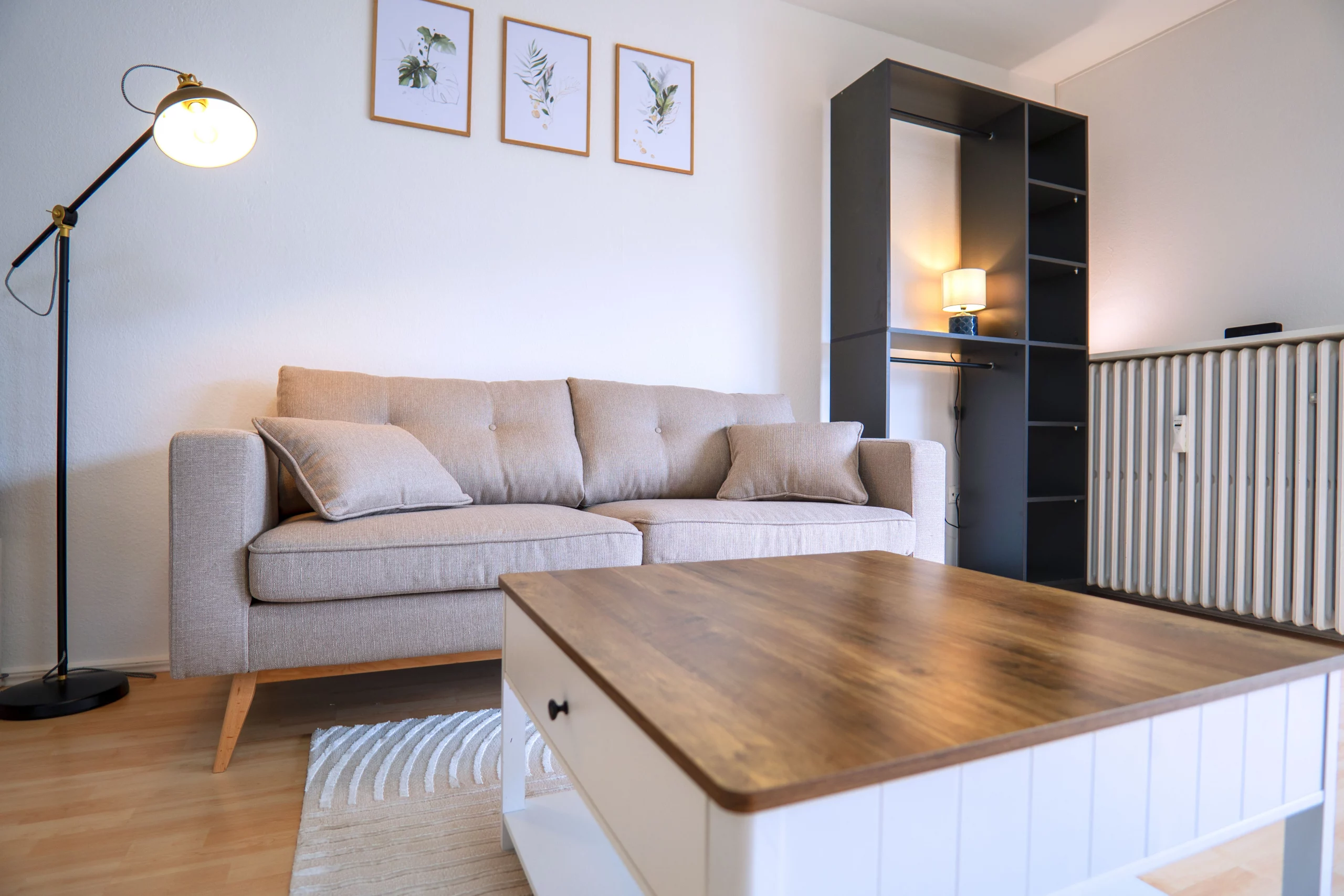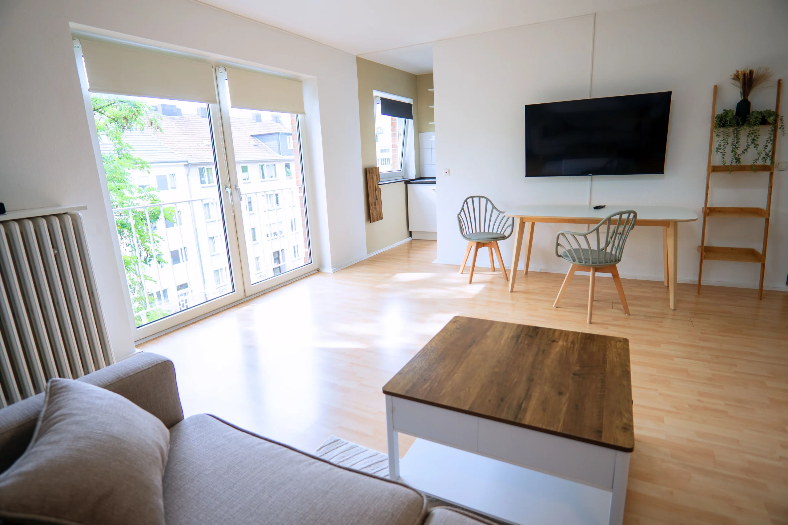 Bright, spacious, and comfortable for up to 2 people – High-quality, modern, and very extensive amenities – Very central, yet absolutely quiet location – Many attractive shops, cafés, and restaurants in the immediate vicinity – Very good transport links to public transport, the airport, main train station, and motorways *Apartment and amenities* Welcome to your new apartment in the heart of Cologne. This exceptional apartment was extensively renovated and refurbished in early 2024. The apartment is spacious and bright and offers plenty of space for up to two people. The high-quality and well-thought-out furnishings create a comfortable, modern, and homely atmosphere. The bathroom, including a bathtub, which was also completely renovated in early 2024, exudes a bright, modern, and extremely high-quality feeling of space. Several large wardrobes, perfectly integrated into the apartment’s floor plan, and plenty of other storage spaces offer ample space to neatly and space-savingly store clothes, luggage, and personal belongings. The apartment offers extensive and high-quality amenities: – Fast internet/WiFi (50Mbit download, 10Mbit upload) – Large bed (140x200cm) with a first-class mattress for maximum comfort – Modern 55″ Smart TV with 4K resolution – Practical appliances such as a washing machine, microwave, toaster, kettle, and Nespresso coffee machine – High-quality Bluetooth speaker – Crockery, cutlery, towels, duvet, pillows, a hairdryer, and much more are naturally included. *Location and surroundings* Waisenhausgasse is very quiet, yet located right in the heart of Cologne, where historic charm meets modern vibrancy! The nearby city center boasts medieval architecture and iconic sights such as Cologne Cathedral. Immerse yourself in the lively atmosphere with bustling markets, trendy boutiques, and a variety of restaurants, cafés, and bars. With a blend of cultural diversity and contemporary flair, Cologne’s city center offers a unique living atmosphere. Waisenhausgasse serves as an ideal starting point for exploring the amenities of Cologne’s city center on foot. At the same time, Waisenhausgasse is a traffic-calmed one-way street. This makes your new apartment in the heart of Cologne exceptionally quiet and offers you an ideal retreat for working, studying, and relaxing. Transportation connections are excellent: Cologne/Bonn Airport (CGN) can be reached by car in 12-18 minutes, Cologne Central Station is only 6-14 minutes away, and public transportation (bus and train) is within walking distance. Rental bicycles are available.Car sharing and electric scooters also provide quick and affordable transportation in the immediate vicinity of the apartment. *IMPORTANT NOTE* The photos are of an apartment of the same size located in the same building. The apartment will be furnished and equipped in mid-July. Photos of the finished apartment will be available from mid/late July.